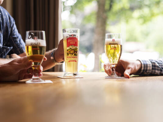 Im Offenausschank sind das Lager hell und das Zwickelbier. In Flaschen wird das komplette Rugenbräu Sortiment inklusive des Mountain Twisters angeboten. Natürlich dürfen die saisonalen Spezialitäten der Brauer Editionen nicht fehlen.